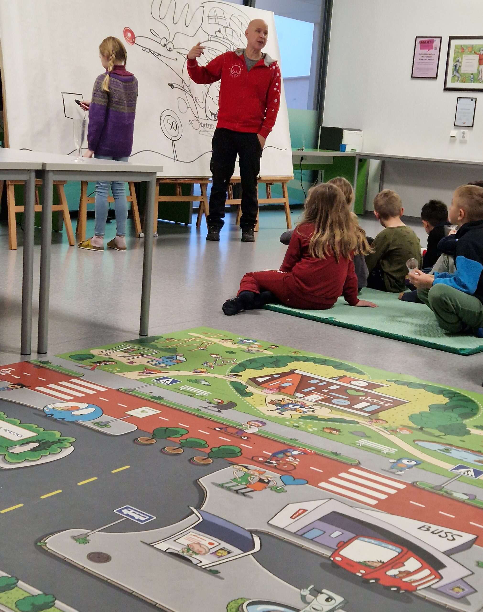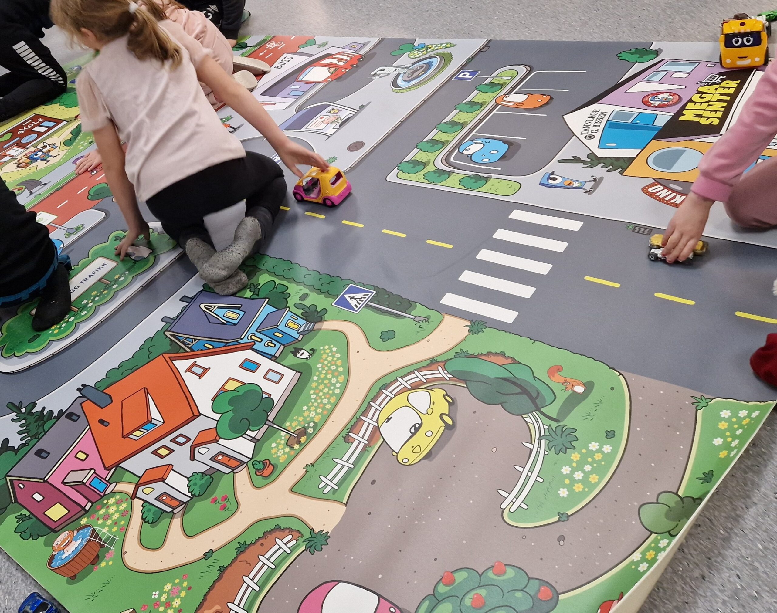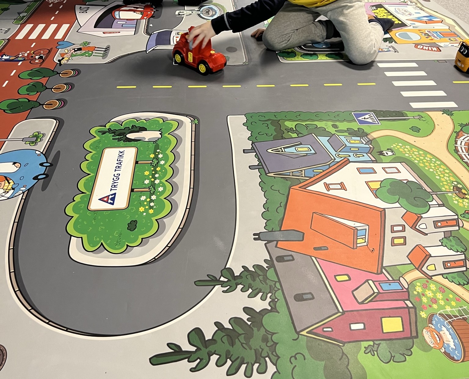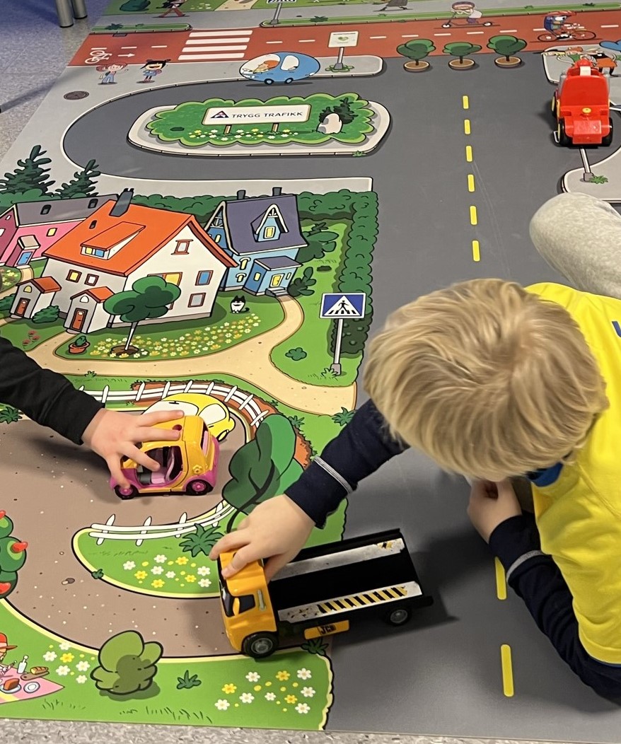 Denne flotte lekematten er laget for SFO, skole og barnehage. Her er det mulig for nysgjerrig lek og samtidig utforske i trafikken. Du finner mer informasjon på denne siden.
