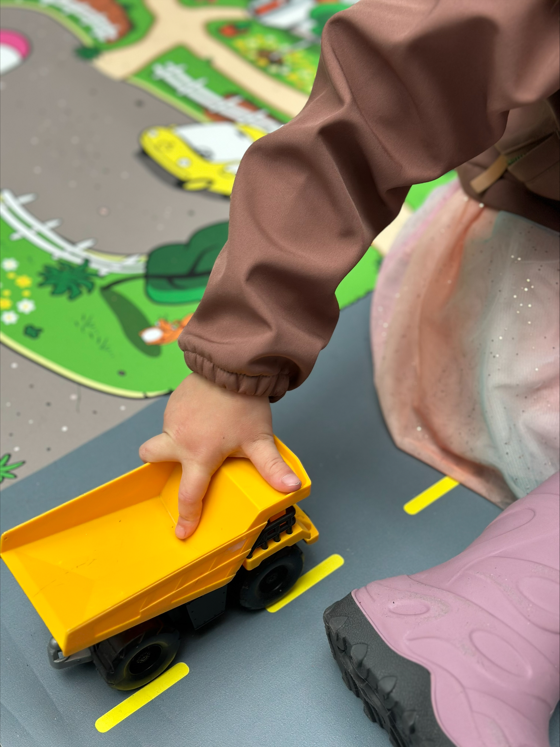 La barna undre seg over «trafikale nøtter» med en morsom aktivitetsmatte som base! Form og farge drar barna rett inn i trafikklekemiljøet, og størrelsen (2 x 3 m) innbyr til å bruke leker dere allerede har. Matten er inndelt i trafikale områder som appellerer til barnas forskertrang – de bare stuper ut i det!